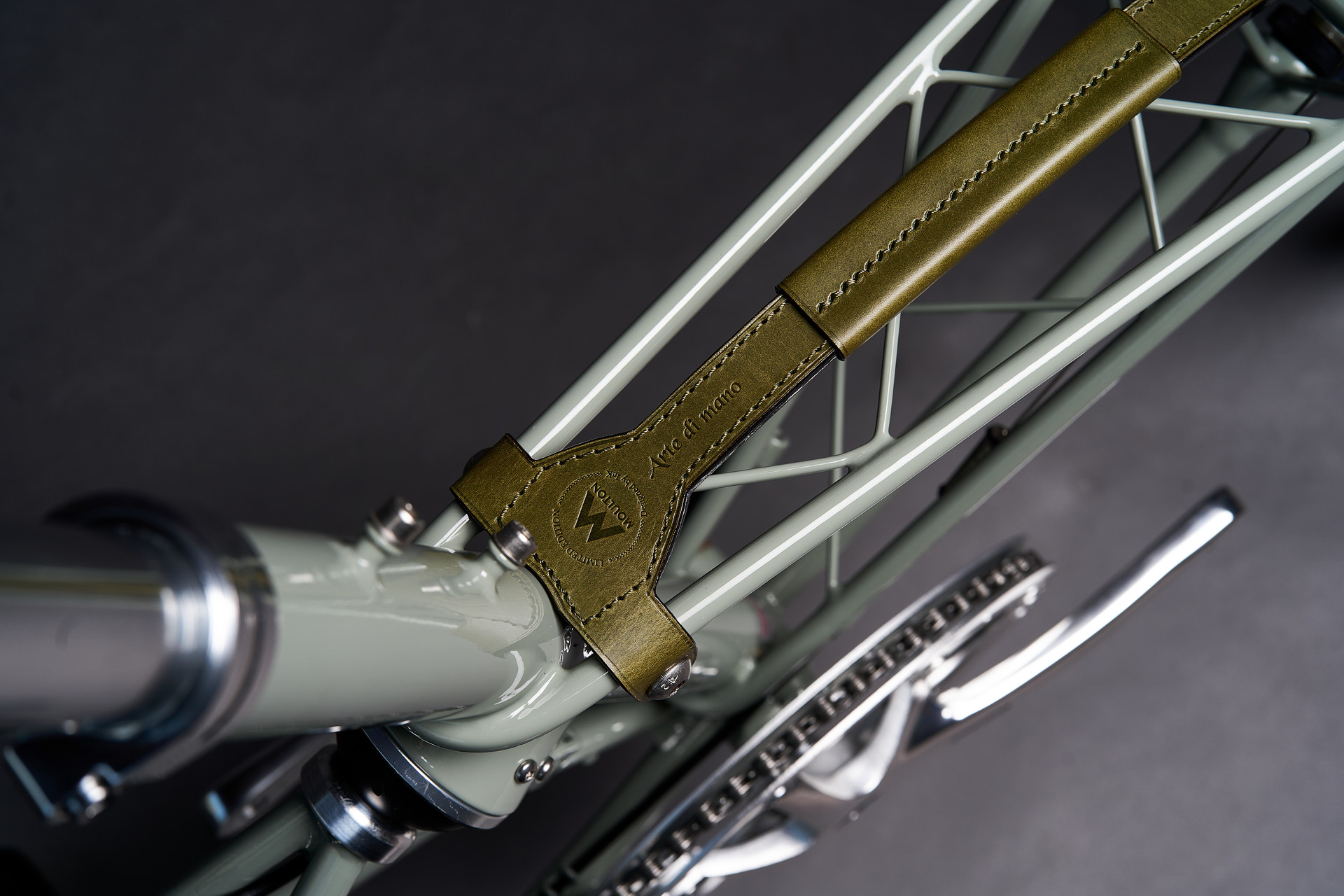 세이지 그레이 컬러의 TSR 9 프레임 위에, 아르떼 디마노만의 한정판 가죽인 부테로 올리바와 전용 니켈 사틴 하드웨어를 더했습니다. 라이카 케이스 제작과 동일한 엄격한 공정을 거친 가죽 액세서리, 그리고 프레임의 미학을 해치지 않는 전용 부자재는 "처음부터 하나로 태어난 듯한" 완벽한 일체감을 선사합니다.